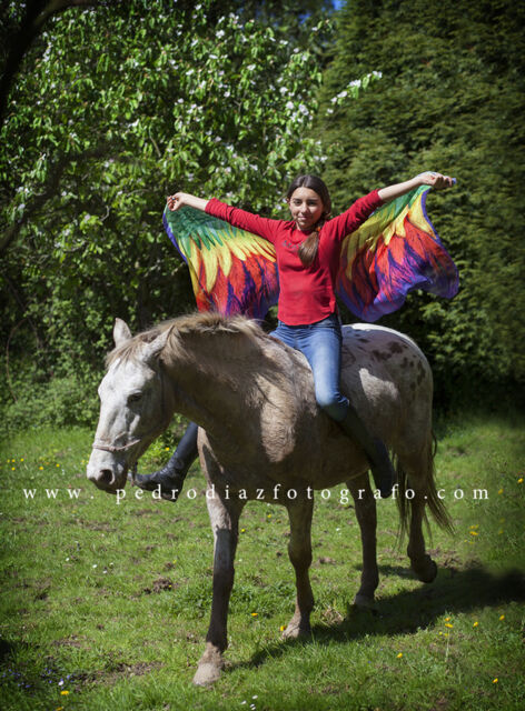 Dos fotos de Diana con Lastrum una de ellas con las alas que confeccionan en hacedoradealas.